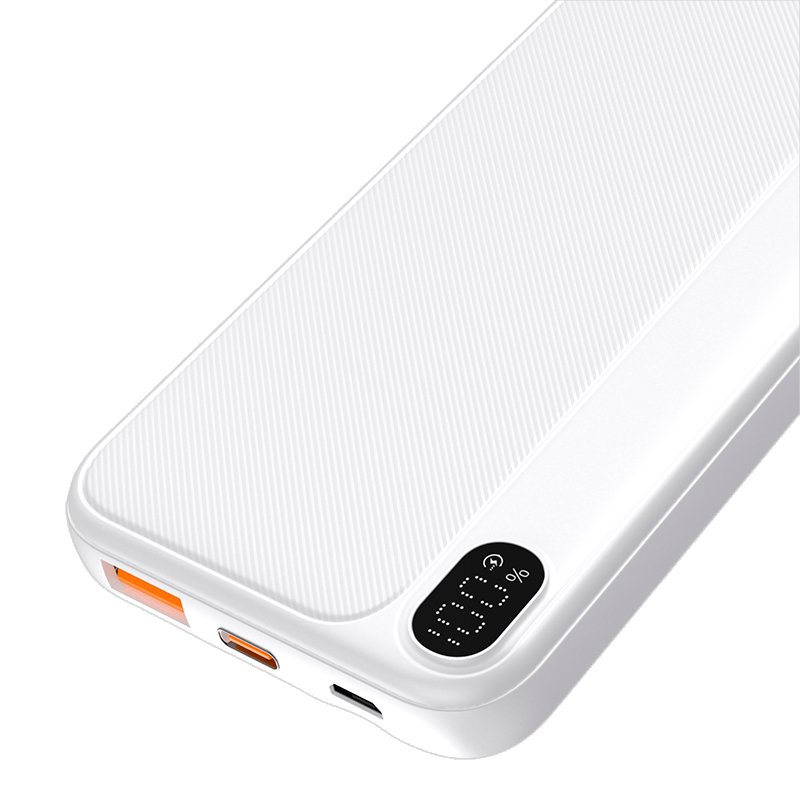 Bateria recarregável portátil universal de 10.000 mAh ideal para carregar os seus smartphones, tablets, câmaras digitais, leitores de MP4 e outros dispositivos onde e quando quiser. Muito leve, para o levar para onde quer que vá. Disponível em várias cores. Incorpora 2 portas com uma saída Tipo C de 1,5 Amp e 2,5 Amp e uma saída Lightning de 2,4 Amp, bem como um ecrã que informa a percentagem de carga da bateria.