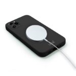 Invólucro de silicone flexível de alta resistência. Graças à sua espessura, oferece proteção total para a câmera do smartphone. Ele incorpora um sensor Qi para carga magnética dentro da camada de veludo que protege o celular dentro do case.