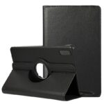 Material polipiel. Con su diseño giratorio, permite sostener el iPad en posición tanto horizontal como vertical. Presentada en caja-blister. Excelente calidad.