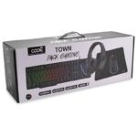 Kit combinado de jogos 4 em 1: COOL TOWN Última geração em: Teclado + Rato + Auscultadores + Mousepad. Combinação de teclado para jogos espanhol com design moderno e teclas de longa duração, além de rato iluminado. Ideal para qualquer tipo de PC, especialmente para computadores de jogos. Compatível com Windows, Mac e OTG. Ligação USB. Teclado ultra-resistente com iluminação RGB. Rato iluminado 3D de 3600 DPI. Auscultadores com ligação Jack duplo de 3,5 mm e ligação USB. Iluminação LED arco-íris, com mudança de cor, na lateral do capacete. Tapete antiderrapante preto COOL.