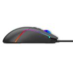 Mouse gamer com conexão USB. Espetacular mouse ergonômico para jogos. Resolução de DPI de até 8000. Sensor de alta precisão. Iluminação LED RGB multicolorida. Inclui um botão com a possibilidade de desligar a referida iluminação. Seu design simétrico o torna ideal para usuários destros e canhotos.